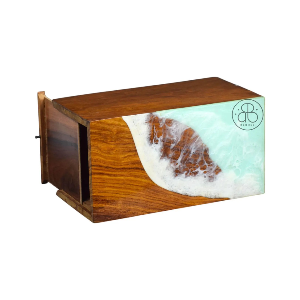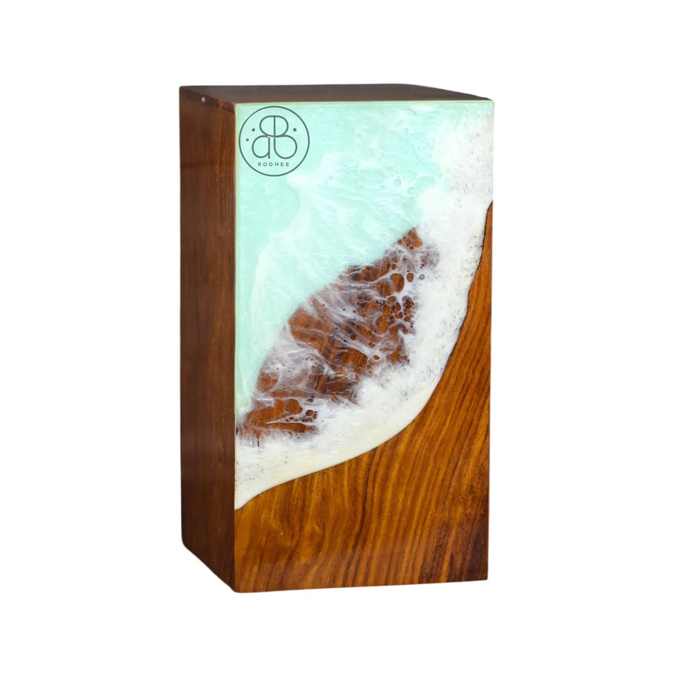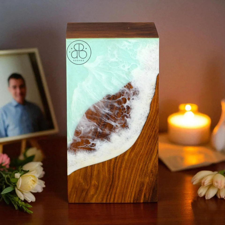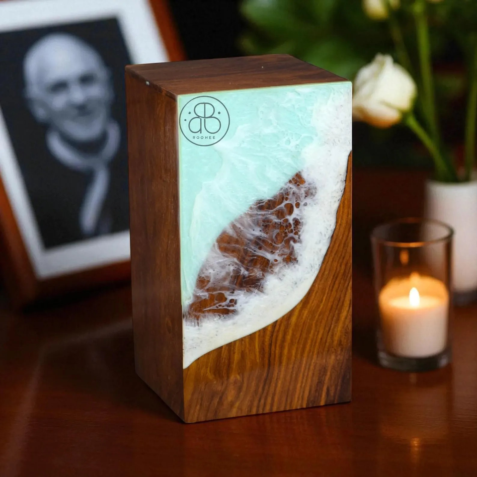 โกศเผาศพโรสวูดทำด้วยมือด้วยเรซินโอเชียนดีไซน์โกศหรือขี้เถ้าของมนุษย์