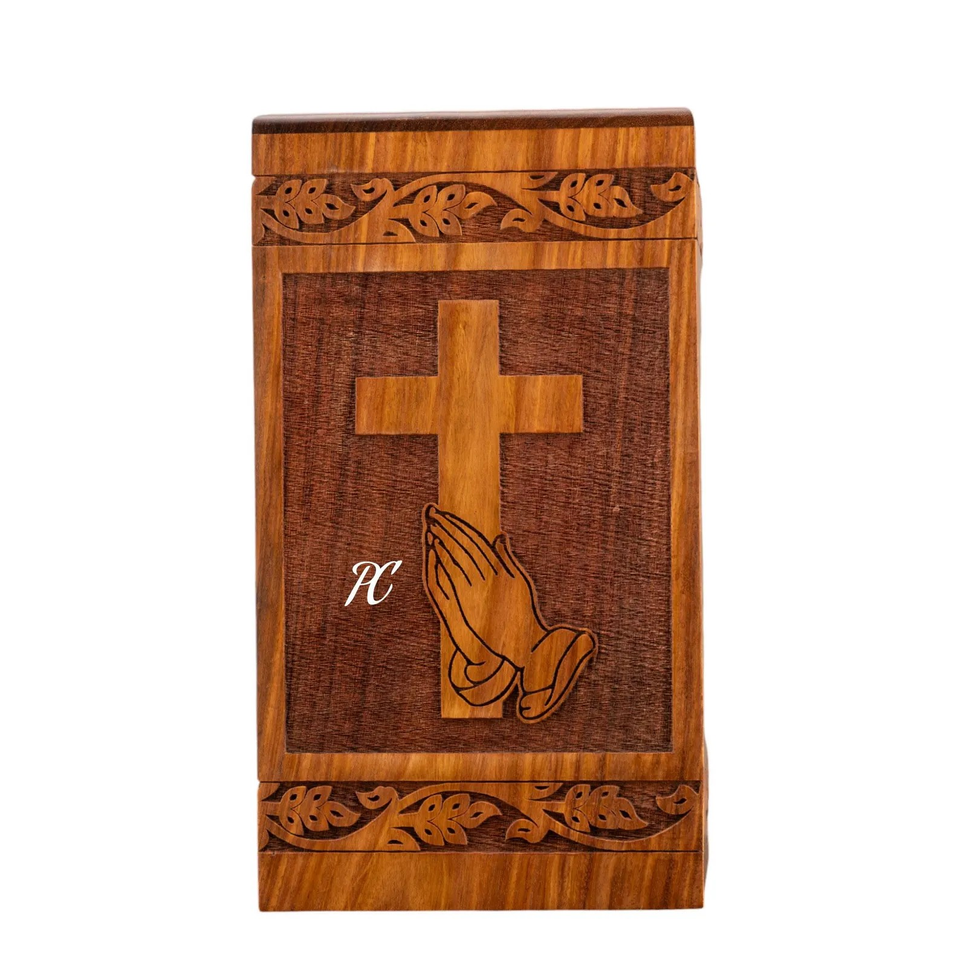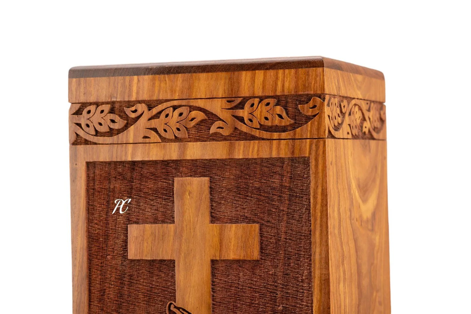 Handcrafted Rosewood Jesus Cross Urn Wooden Memorial Keepsake Box Decorative Cremation Urn for Ashes