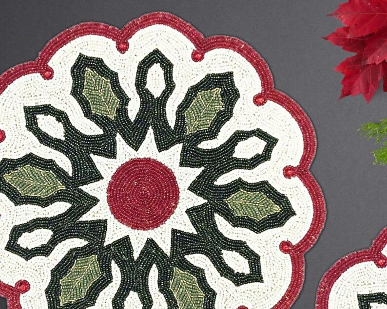 ที่รองจานลูกปัดทรงกลมทำด้วยมือสำหรับโต๊ะอาหารของตกแต่งคริสต์มาสงานเลี้ยงสังสรรค์ในครอบครัว