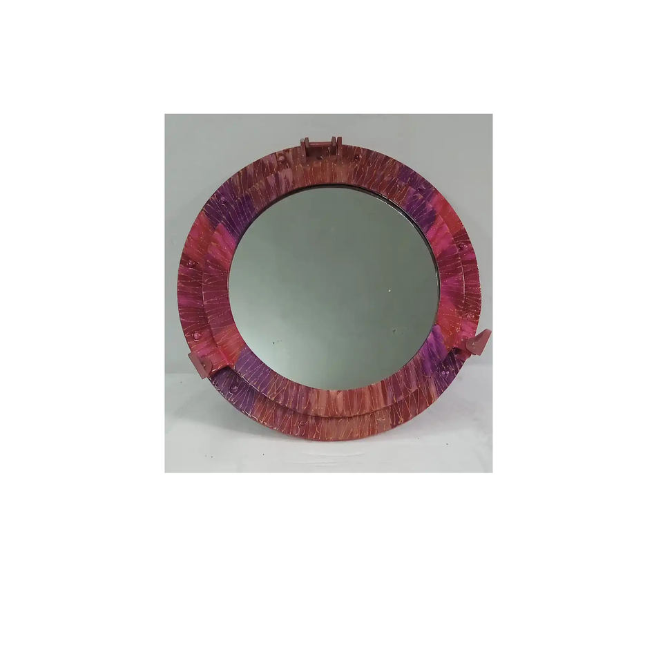 กระจกตกแต่งผนังทรงกลมทำมือพร้อมกรอบหลากสีมีลวดลาย