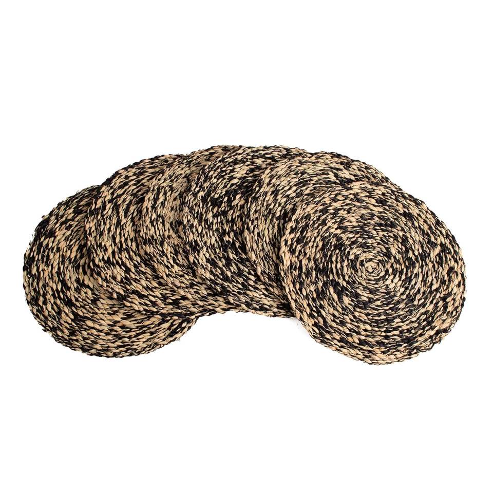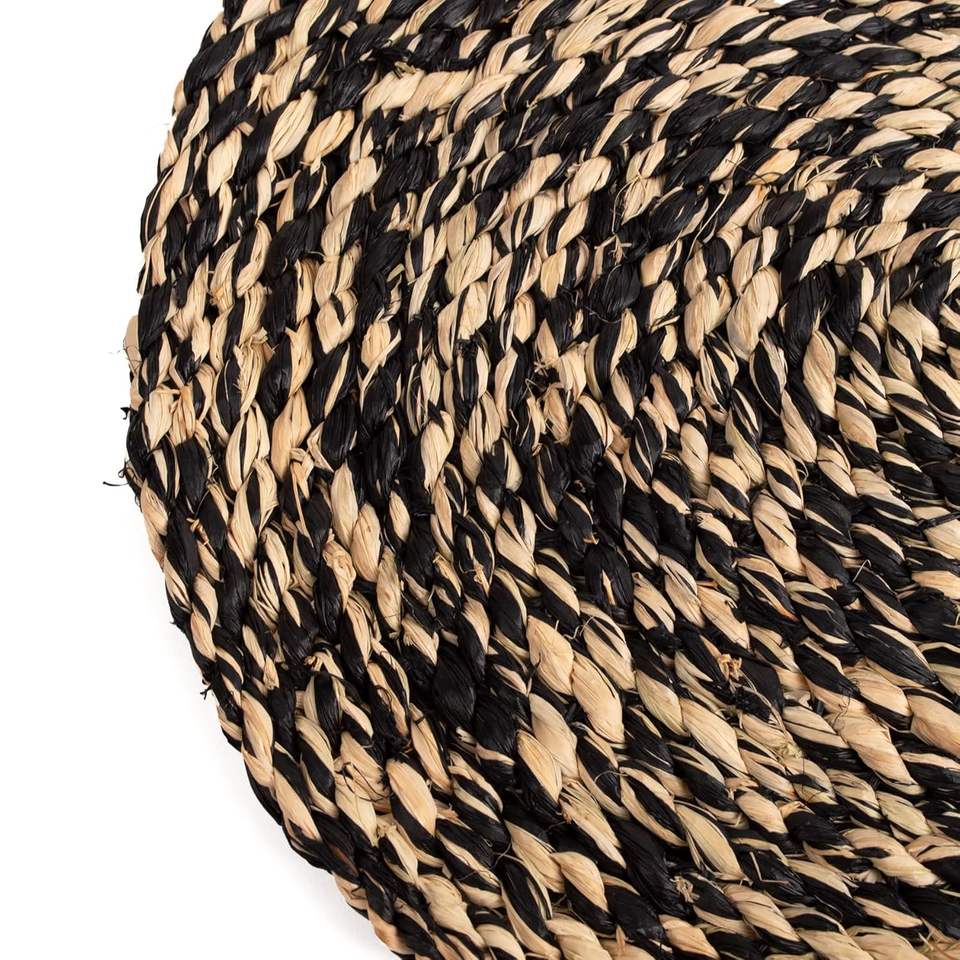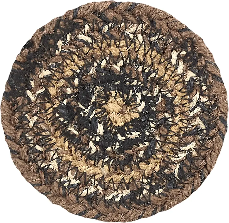 แผ่นรองแก้วทรงกลมทำมือจากผ้าปอกระเจาสีน้ำตาล ดำ น้ำตาลอ่อน สไตล์เรียบง่าย สำหรับป้องกันโต๊ะ