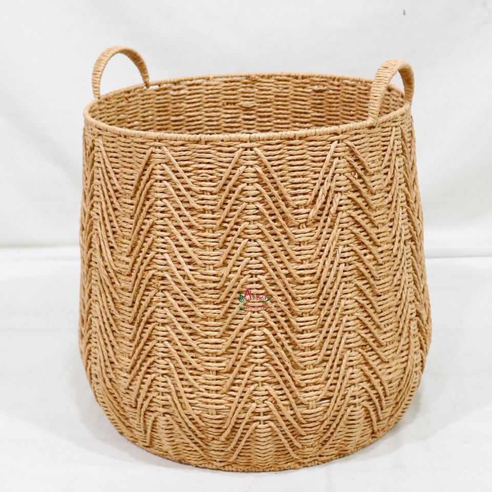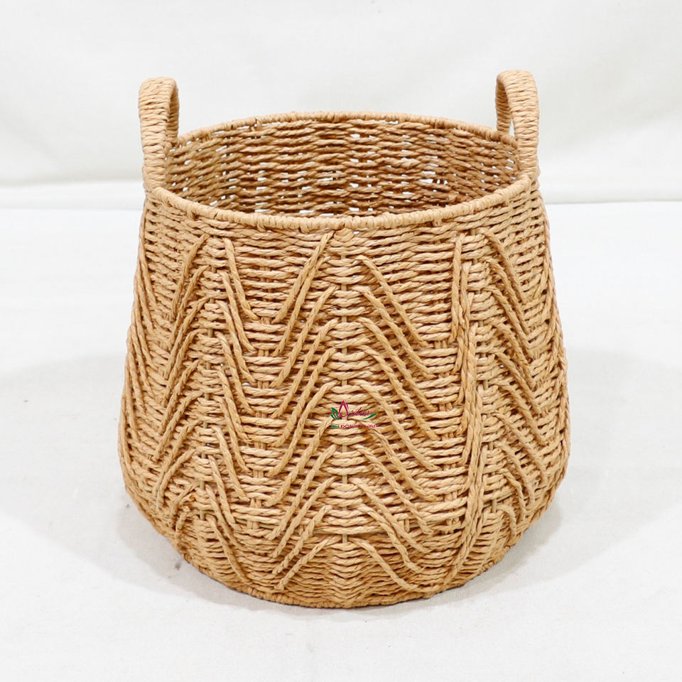 ตะกร้าเชือกกระดาษทอทำด้วยมือมีลวดลายซิกแซกสำหรับตกแต่งบ้านและจัดเก็บอเนกประสงค์
