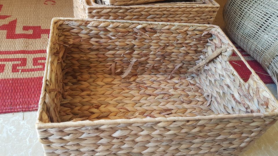 ตะกร้าผักตบชวาแบบชนบทที่ทำด้วยมือและที่จัดเก็บอเนกประสงค์