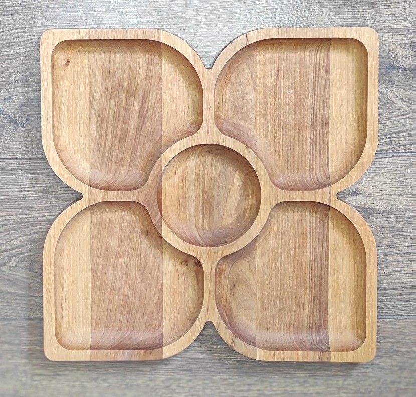 จานไม้แบบชนบททำด้วยมือสำหรับอาหารเรียกน้ำย่อยขนมผลไม้ขนมหวานและชีสสำหรับห้องครัวและร้านอาหารในบ้าน