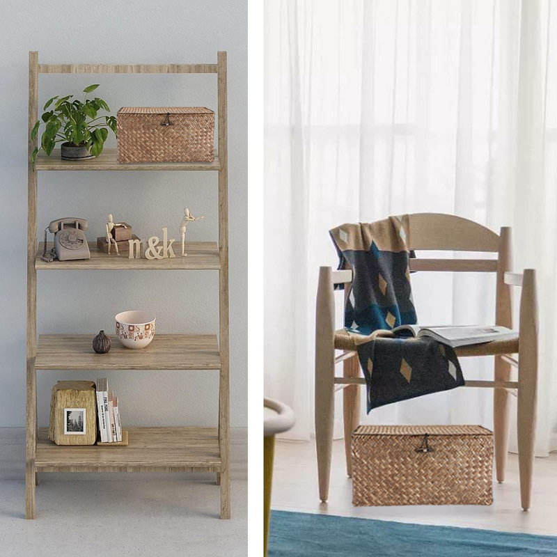 ตะกร้าใส่ของตกแต่งทำมือจากหญ้าทะเลที่เก็บของแบบสาน