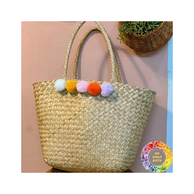 กระเป๋าชายหาดทำมือจากหญ้าทะเลที่ทนทานพร้อมกระเป๋าด้านในสำหรับการเดินทางในฤดูร้อนและพกพากลางแจ้งทุกวัน