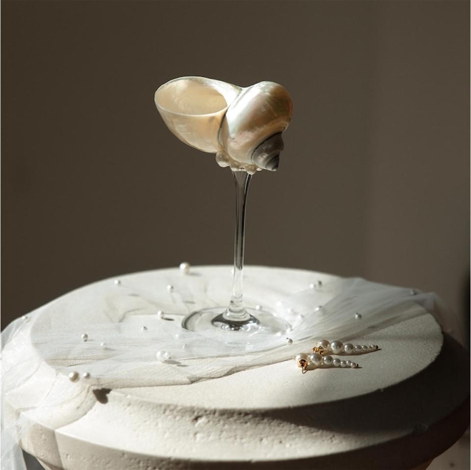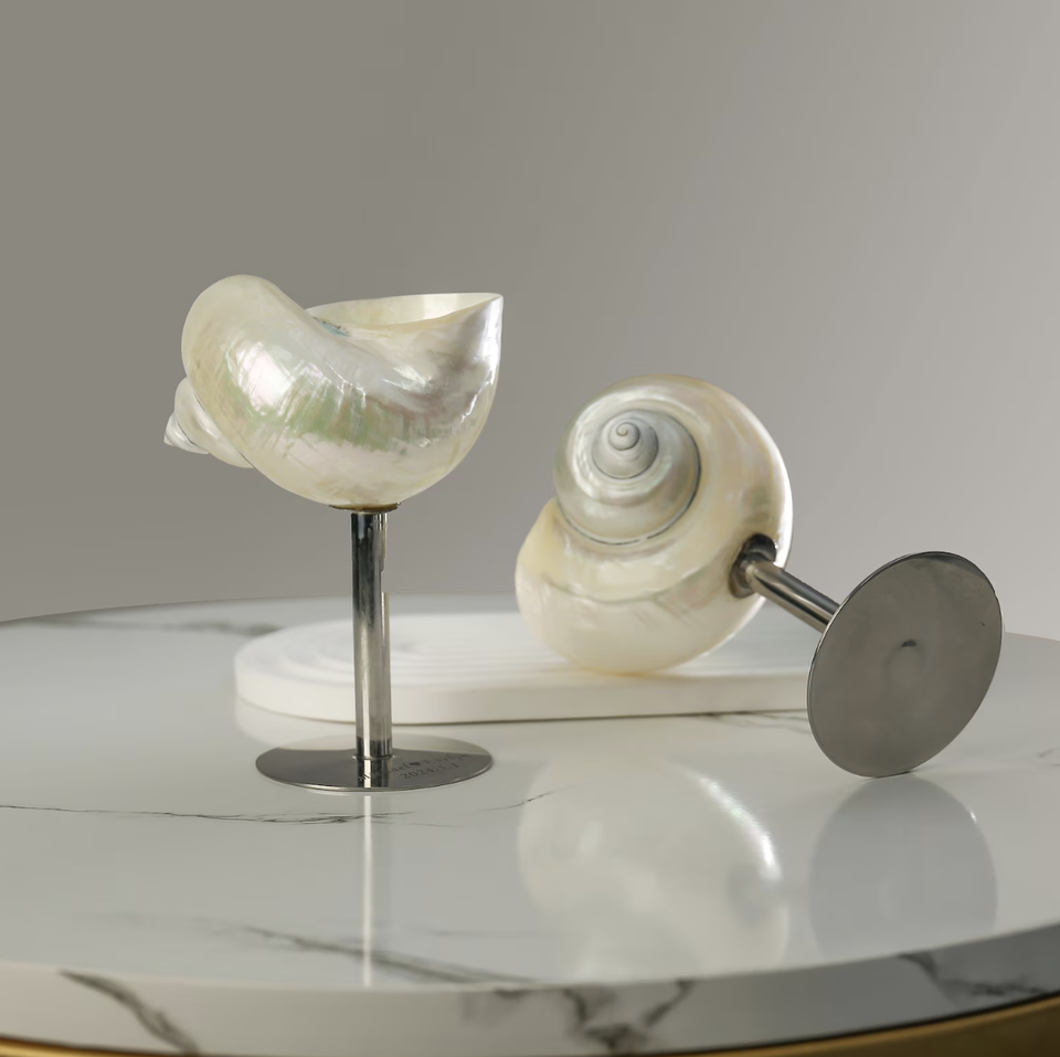 แก้วไวน์เปลือกหอยที่ทำด้วยมือถ้วยเปลือกหอยที่เป็นเอกลักษณ์สำหรับของขวัญแต่งงานจากชายฝั่ง