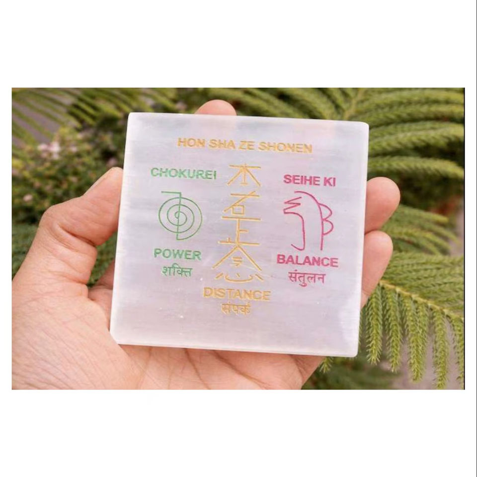 แผ่นคริสตัลเซเลไนต์เจ็ดจักระ งานแฮนด์เมด สไตล์เฟิงชุย สำหรับการทำสมาธิและตกแต่ง ใช้เป็นเครื่องมือบำบัด