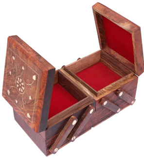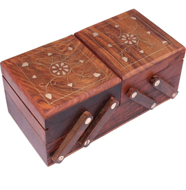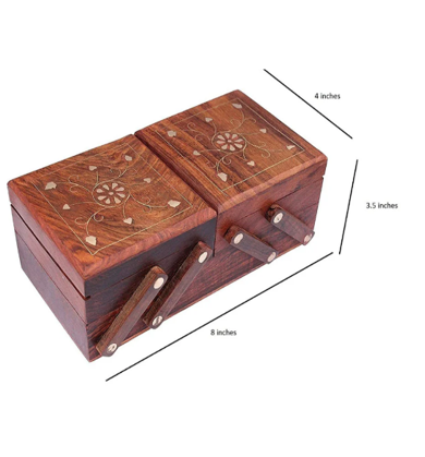 กล่องเก็บเครื่องประดับทำด้วยมือทำจากไม้ Sheesham สีน้ำตาลธรรมชาติสำหรับผู้หญิงที่มีการออกแบบที่หรูหรางานฝีมือมรดกและแหล่งกำเนิดของชาวอินเดีย
