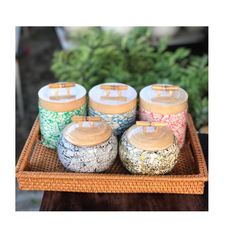 โถไม้ไผ่ฝังเปลือกหอยทำมือ ของตกแต่งแบบดั้งเดิม สำหรับใส่ขนมและถั่ว เหมาะสำหรับเทศกาลตรุษจีน
