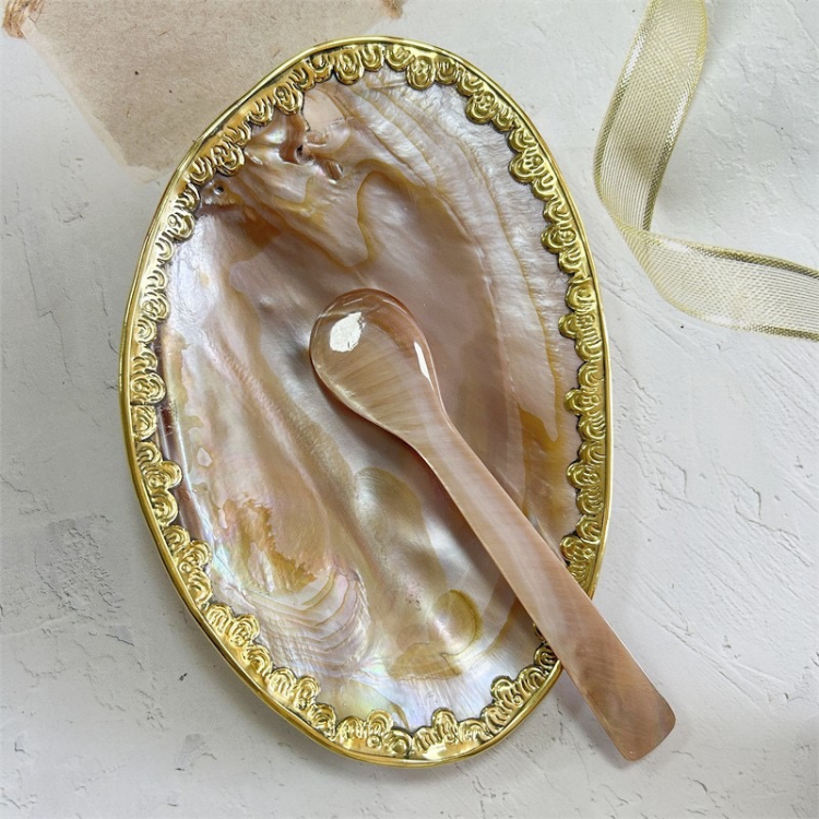 ช้อนเปลือกหอยทำด้วยมือสำหรับนักชิมอาหารช้อนธรรมชาติของหอยมุกคาเวียร์สำหรับเสิร์ฟเนยคาเวียร์และเครื่องเทศ