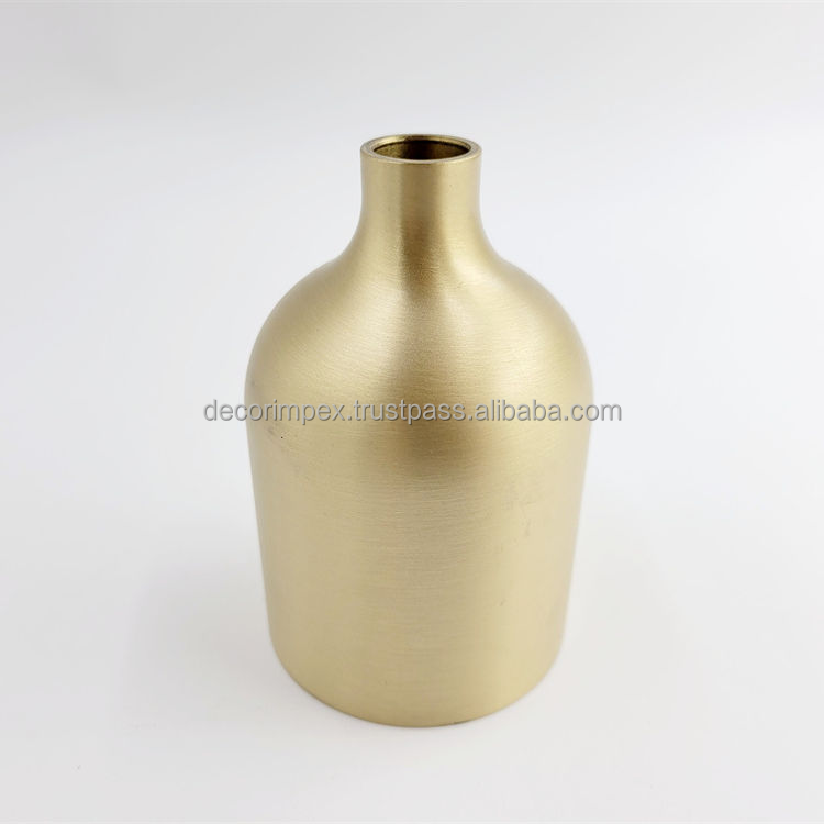 แจกันกระถางต้นไม้โลหะสีทองเหลืองเงาทำด้วยมือสำหรับตกแต่งในร่มภาชนะปลูกต้นไม้