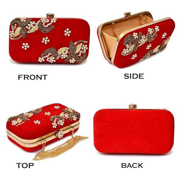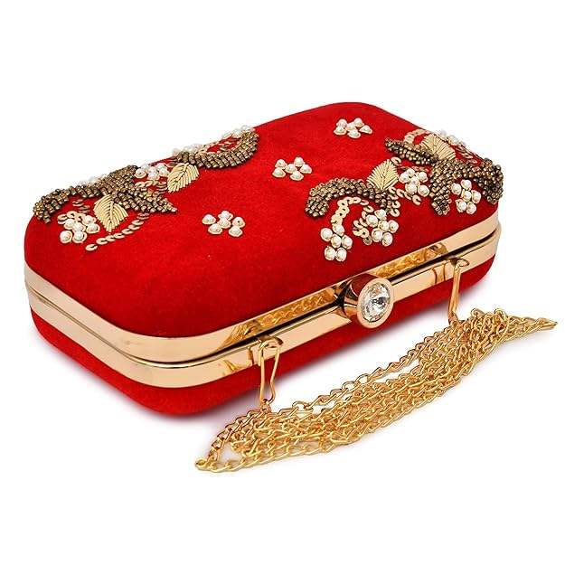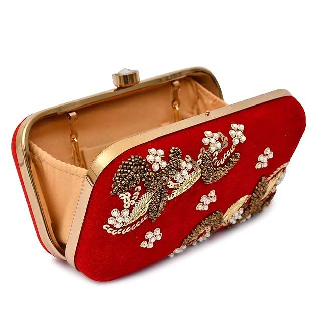 กระเป๋าคลัทช์ลายดอกไม้ปักด้วยไหมซารีทำมือ ดีไซน์อินเดียประดับด้วยลายทอง งานฝีมือคุณภาพสูง ปรับแต่งได้