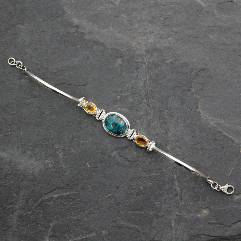 สร้อยข้อมือโซ่เงินทำมือพร้อมเครื่องประดับแฟชั่นอินเดียสีเทอร์ควอยซ์และซิทรีนจากอินเดีย