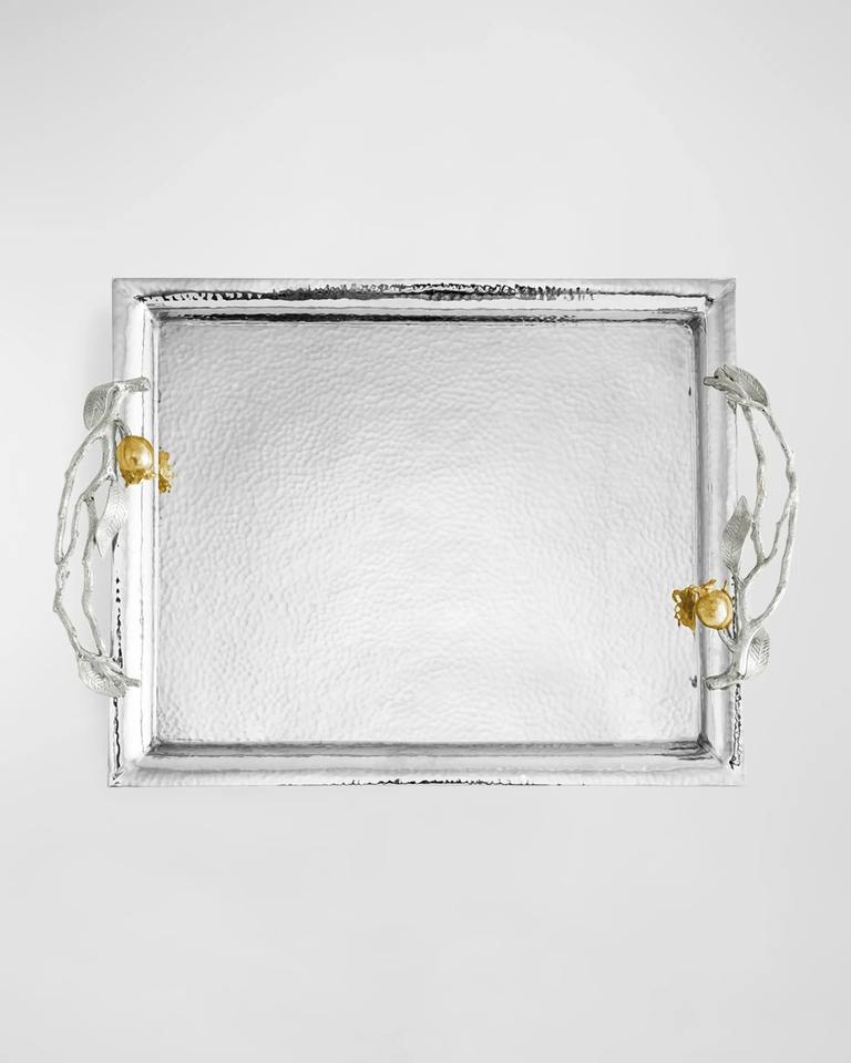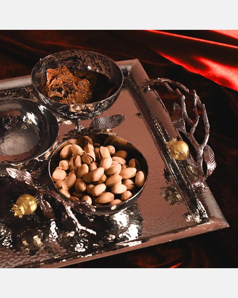 ถาดผลไม้ทับทิมเงินและทองทำมือ จานเสิร์ฟลายสลักทองคำสุดหรู