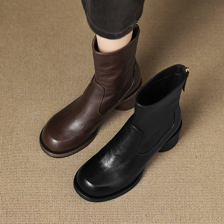รองเท้าทำมือแบบสวม หัวมน ส้นเตี้ย หนังแท้ กันน้ำ พื้นนุ่ม กันลื่น ทนทาน พร้อมหัวเข็มขัดขนาดใหญ่สไตล์เรโทร
