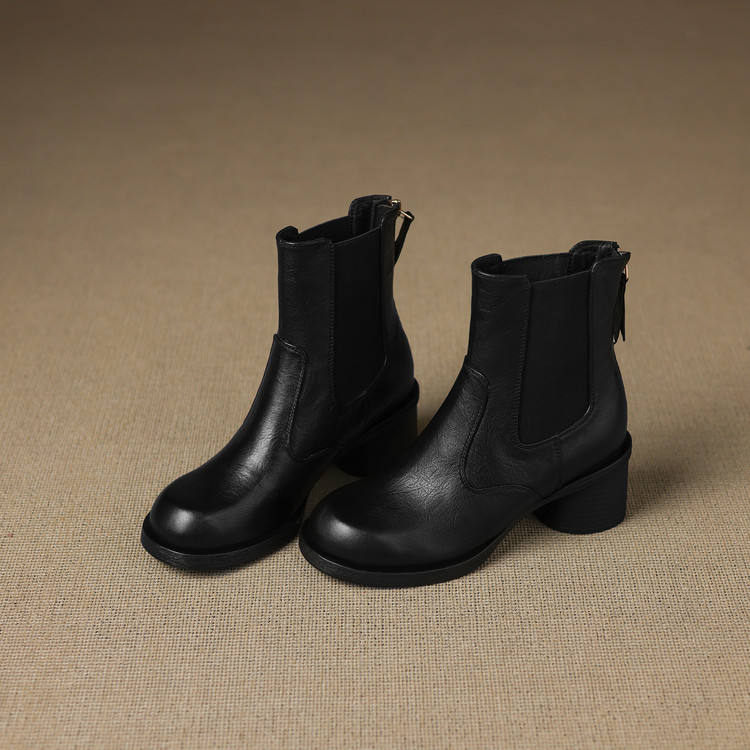 รองเท้าทำมือแบบสวม หัวกลม ส้นเตี้ย หนังแท้ กันน้ำ พื้นนุ่ม กันลื่น พร้อมหัวเข็มขัดขนาดใหญ่สไตล์เรโทร