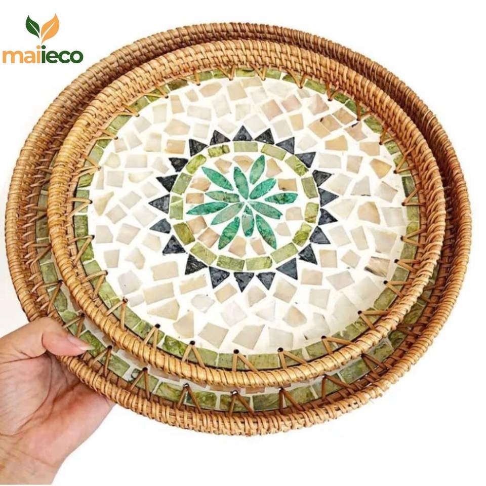 Product name:Rectangle Mother Of Pearl Serving Tray Rattan Trays
