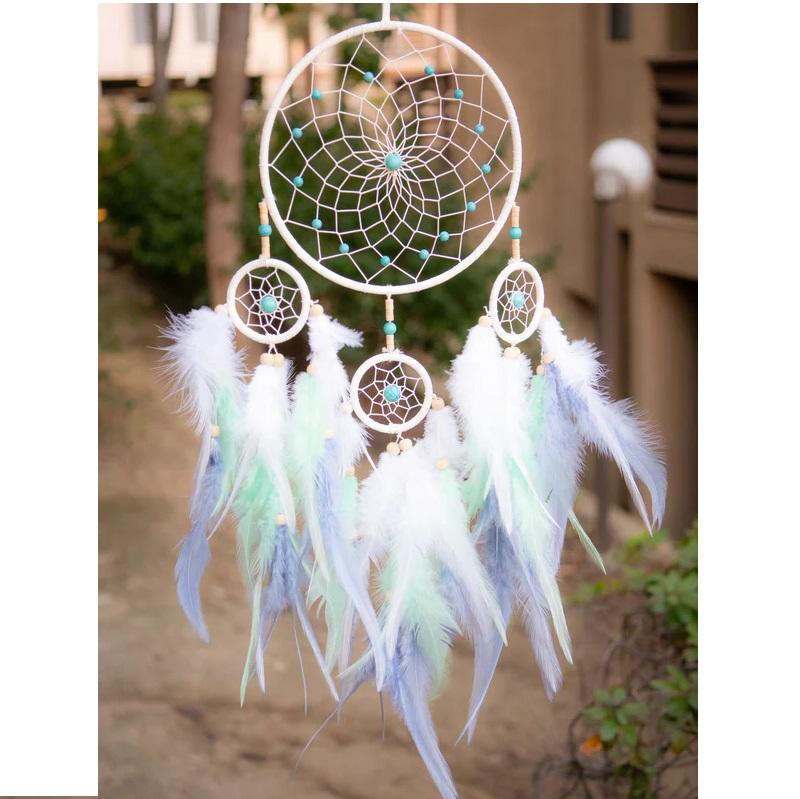 ที่ดักฝันทรงวงกลมขนาดเล็กแบบแฟนซีงานฝีมือดีไซน์ทันสมัยรูปทรงกลมสำหรับแขวนติดผนังสีที่กำหนดเอง