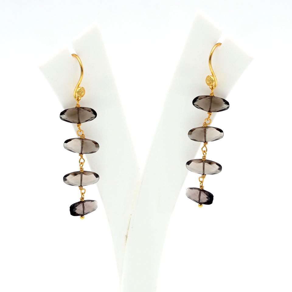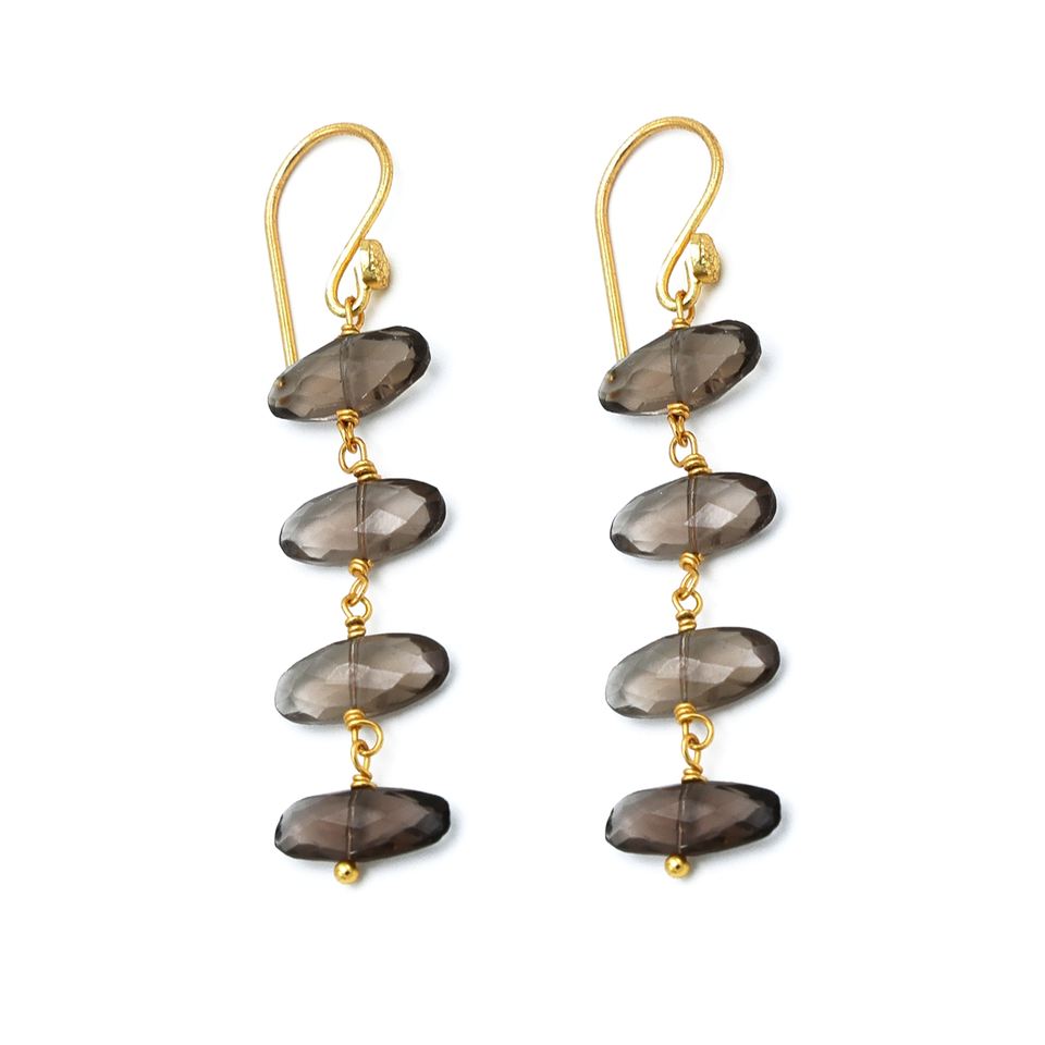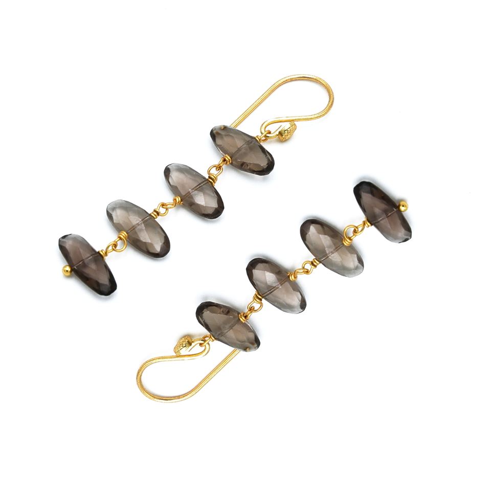 เครื่องประดับควอทซ์ทรงรีสีควันทำด้วยมือ | ชุบทอง18K โลหะผสมทองแดงอัลลอยด์สำหรับงานแต่งงานดีไซน์ทันสมัย | ผู้ผลิต