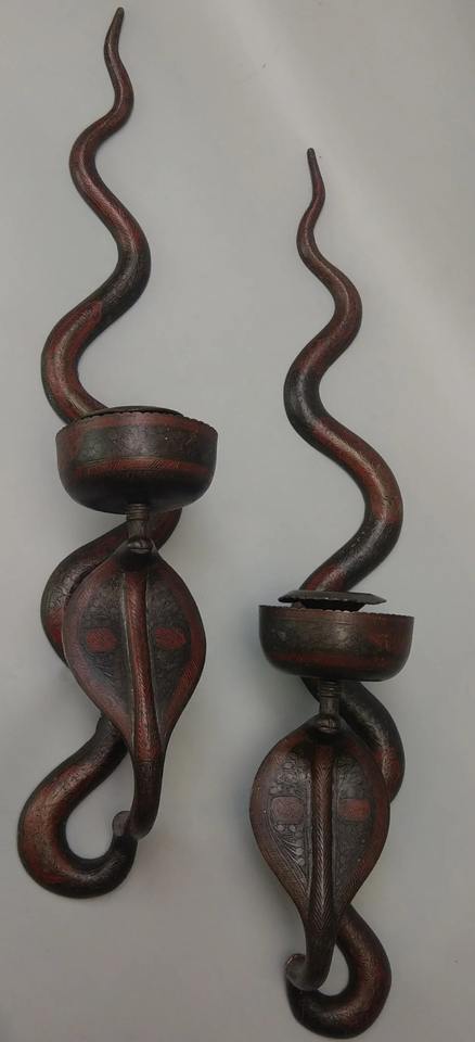 เชิงเทียนติดผนังอะลูมิเนียมลายงู งานแฮนด์เมด ตกแต่งบ้านสไตล์วินเทจ งานศิลปะ คู่