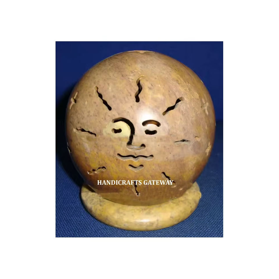 ที่ใส่เทียนทีไลท์ทำจากหินสบู่ธรรมชาติ ดีไซน์แกะสลักลายดวงอาทิตย์ งานแฮนด์เมด เป็นมิตรกับสิ่งแวดล้อม ทนทาน ไม่ซ้ำใคร เหมาะสำหรับตกแต่งบ้านและโรงแรม