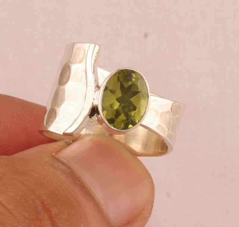 ทำด้วยมือ925แข็งแหวนเพอริโดสีเงินแท้ตอกเสร็จสิ้นการออกแบบที่ไม่ซ้ำกันสายเหมาะสำหรับเป็นของขวัญสำหรับผู้หญิง