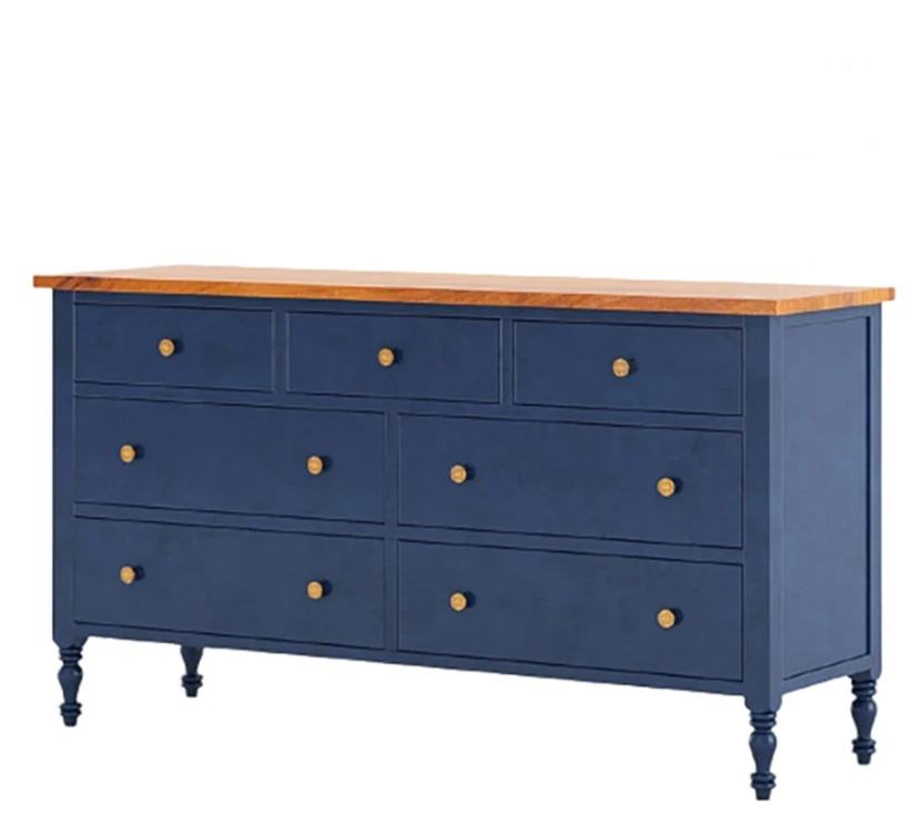 ตู้ข้างเตียงไม้มะฮอกกานีแท้สีน้ำเงิน ทำด้วยมือ | ตู้ลิ้นชัก 7 ชั้น ลูกบิดทองเหลือง | ห้องรับประทานอาหารสไตล์ชนบท ห้องนั่งเล่น โรงแรม ห้องครัว