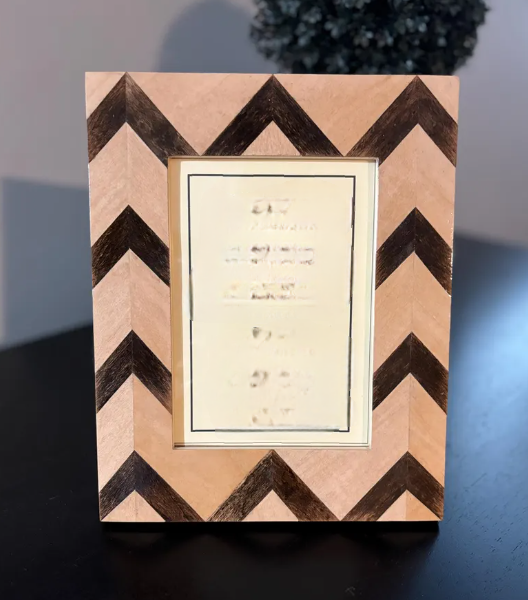 กรอบไม้แข็งทำด้วยมือที่มีการฝังชิปไม้ศิลปะและขัดเงาเรียบมีเฉดสีดินธรรมชาติ