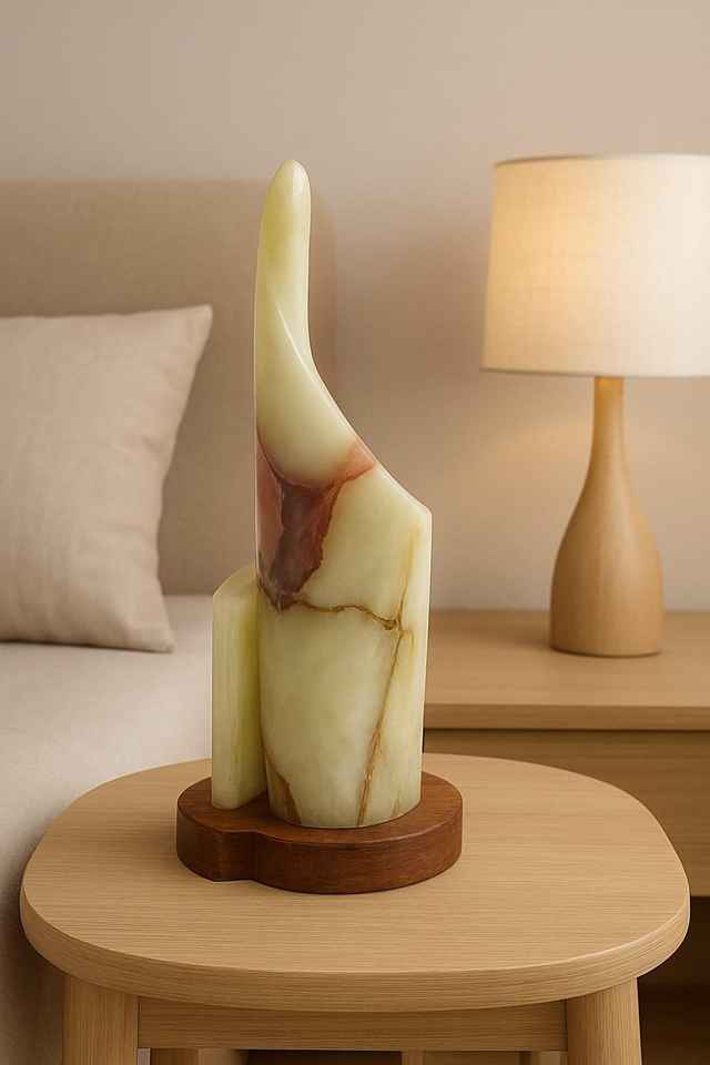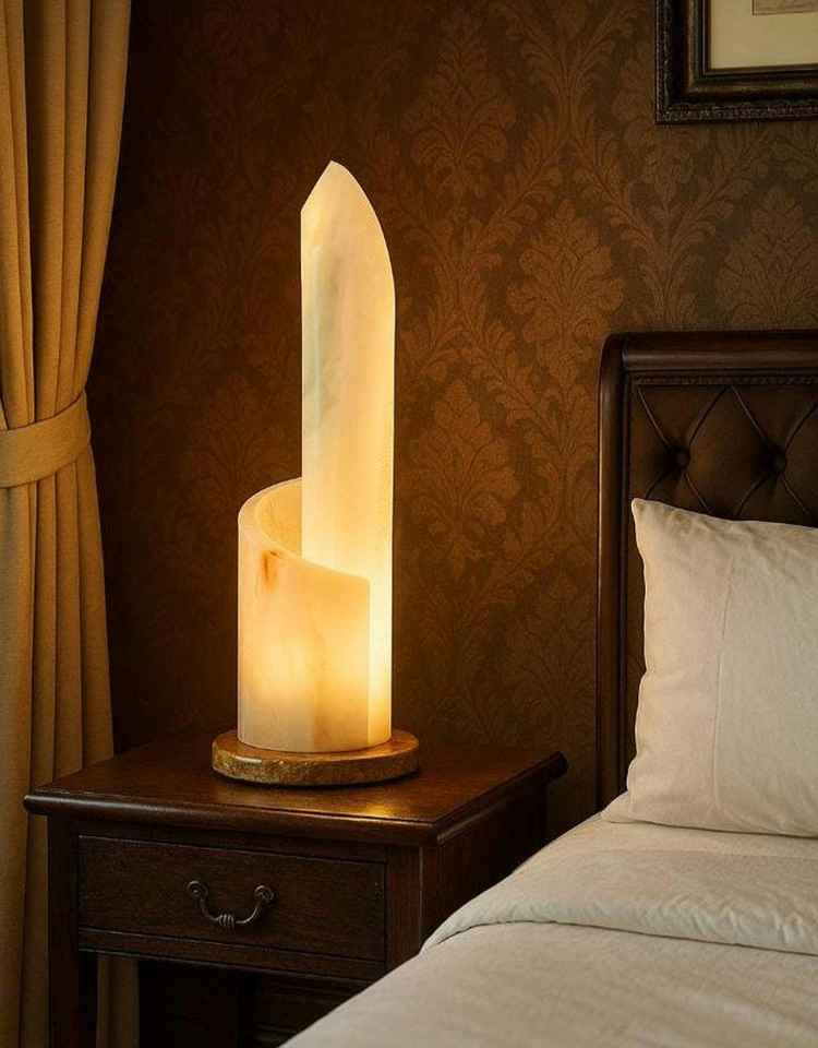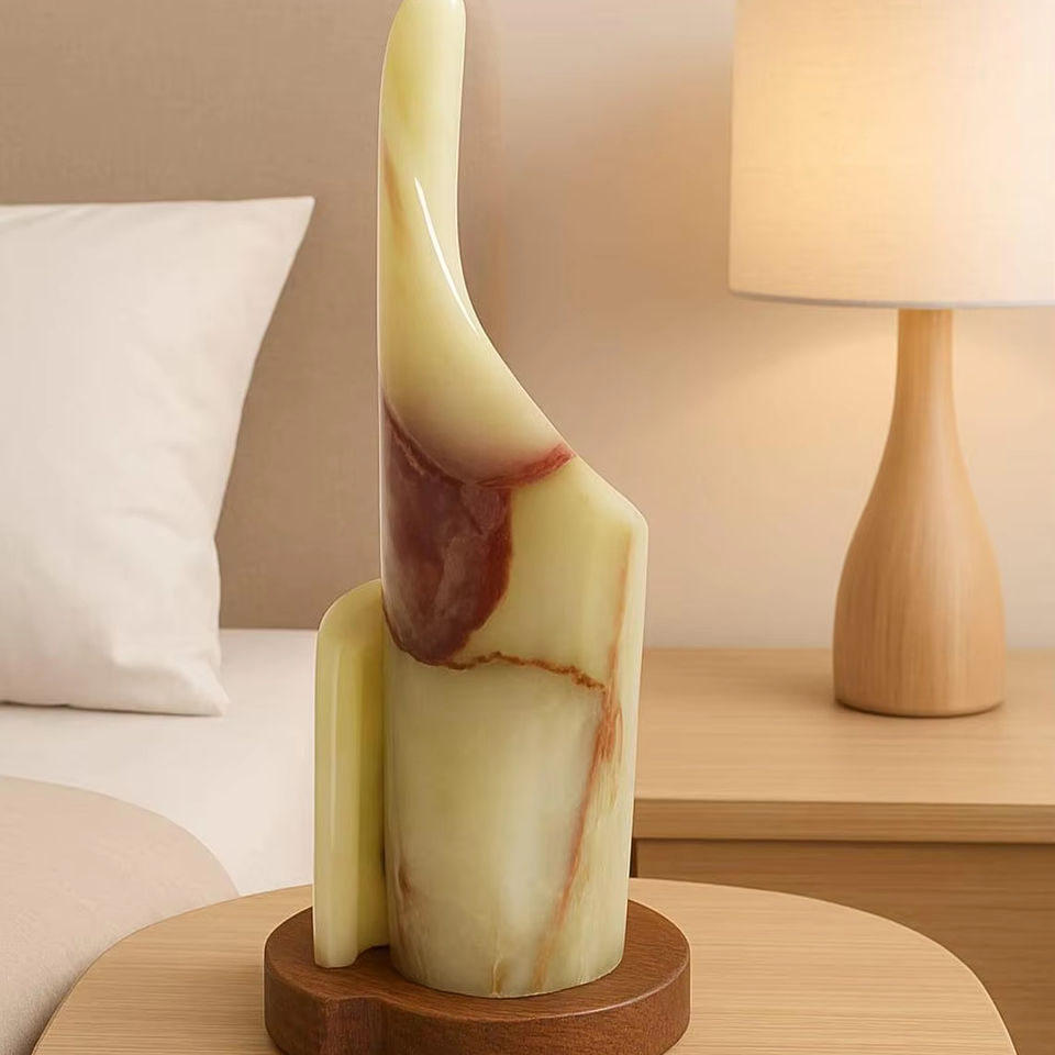 โคมไฟตั้งโต๊ะหินออนิกซ์ทรงเกลียวทำมือ ดีไซน์หรูหราจากหินธรรมชาติ เหมาะสำหรับตกแต่งบ้านและตกแต่งภายในสไตล์โมเดิร์น