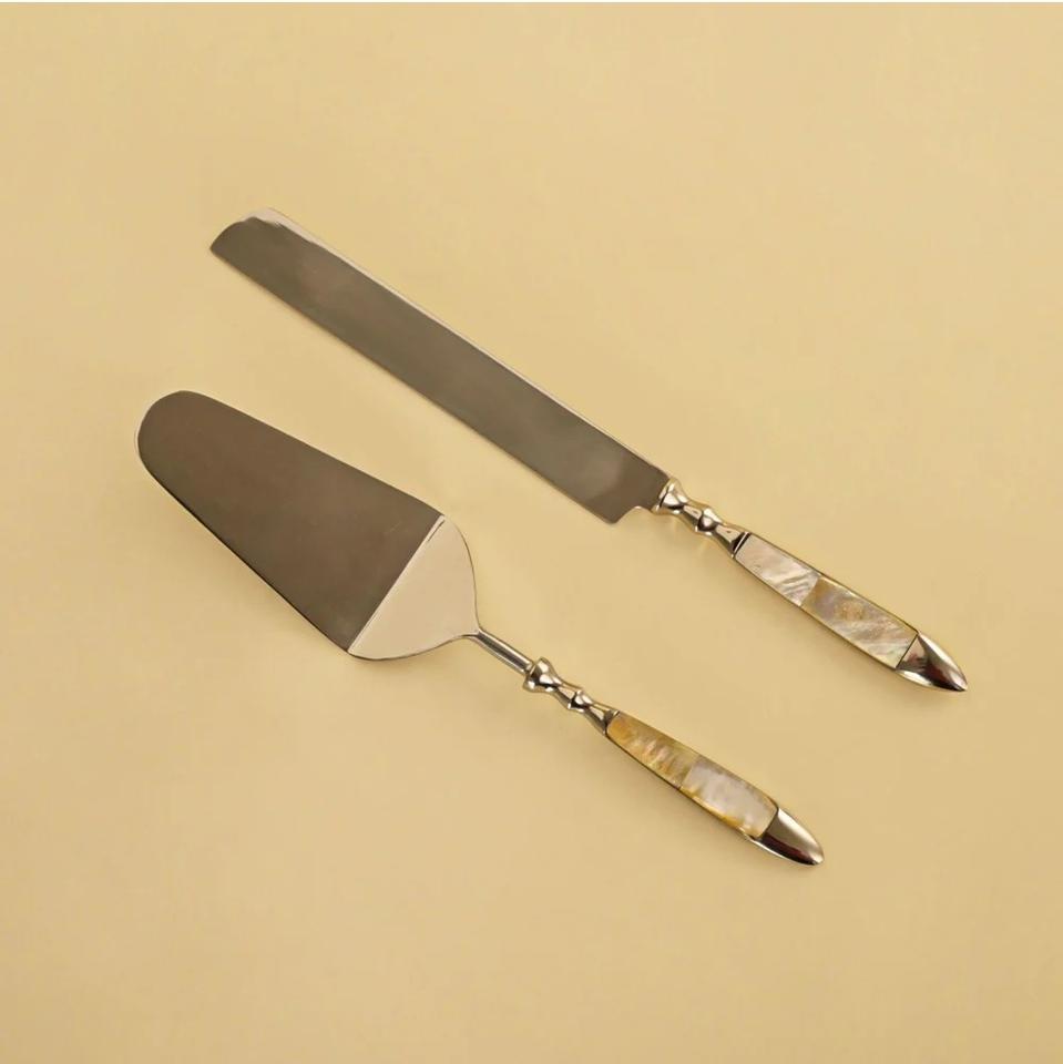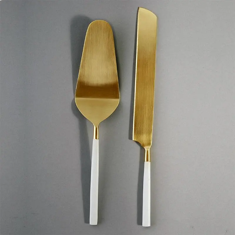 ชุดอุปกรณ์เสิร์ฟเค้กสแตนเลสสตีลทำมือ พร้อมมีดและตะหลิวสีทองพรีเมียม สำหรับงานแต่งงาน โรงแรม และร้านอาหาร