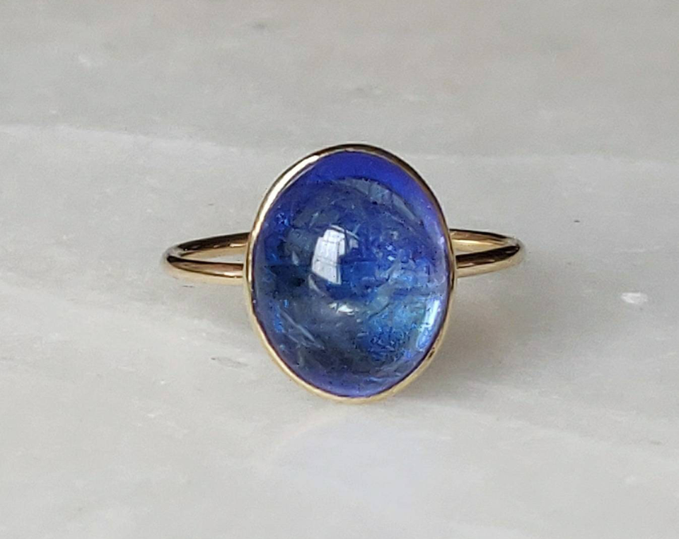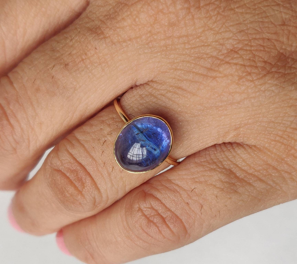แหวนอัจฉริยะชุบทองเงินสเตอร์ลิงทำด้วยมืออัญมณี Lapis Lazuli ขนาด8มม. ตัวเรือนทรงกลมสำหรับเป็นของขวัญวันเกิดมีความสุขสำหรับเธอ