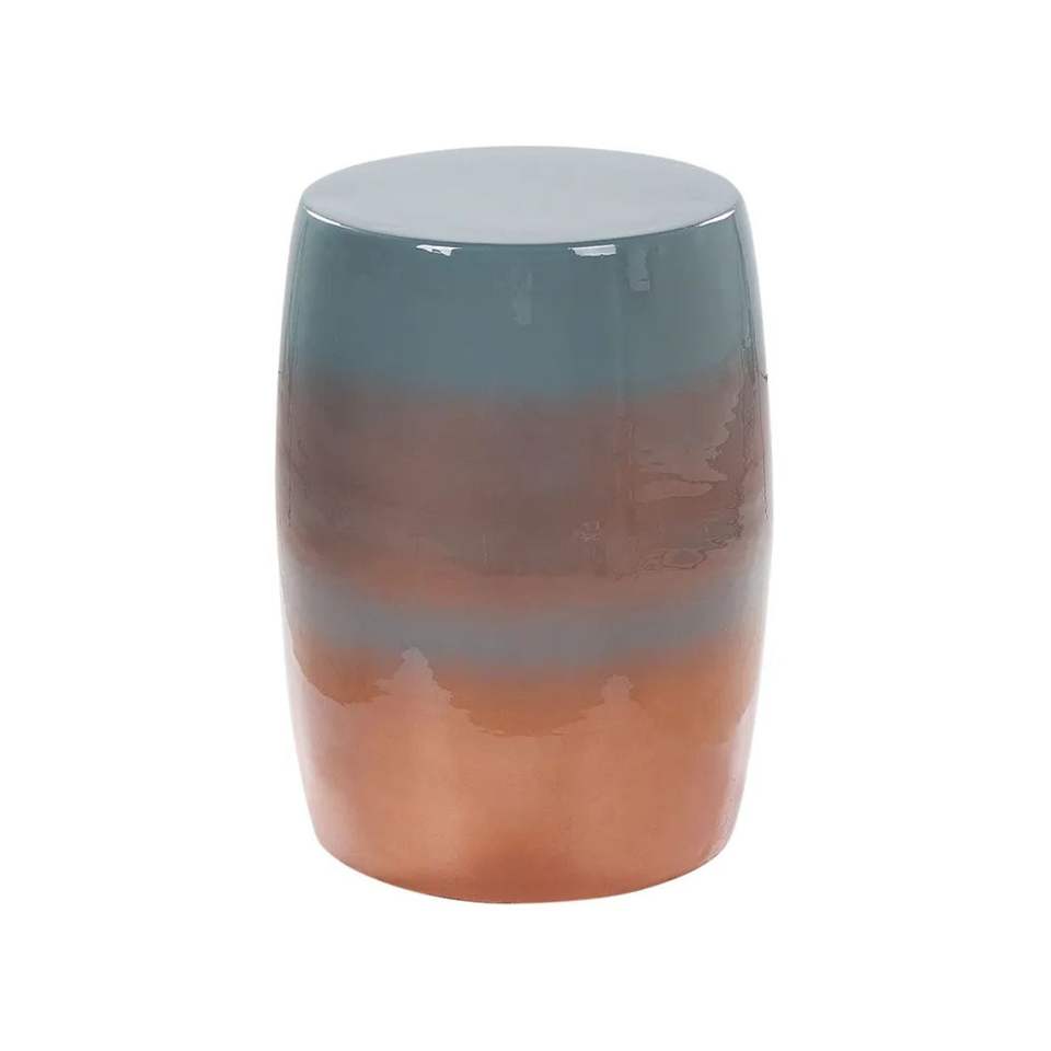 โต๊ะข้างเตียงโลหะลายทางทำมือ โต๊ะเหล็กทรงกลมตกแต่งสไตล์โมเดิร์น โต๊ะทรงกลองสีแดงและสีขาว โต๊ะโลหะ