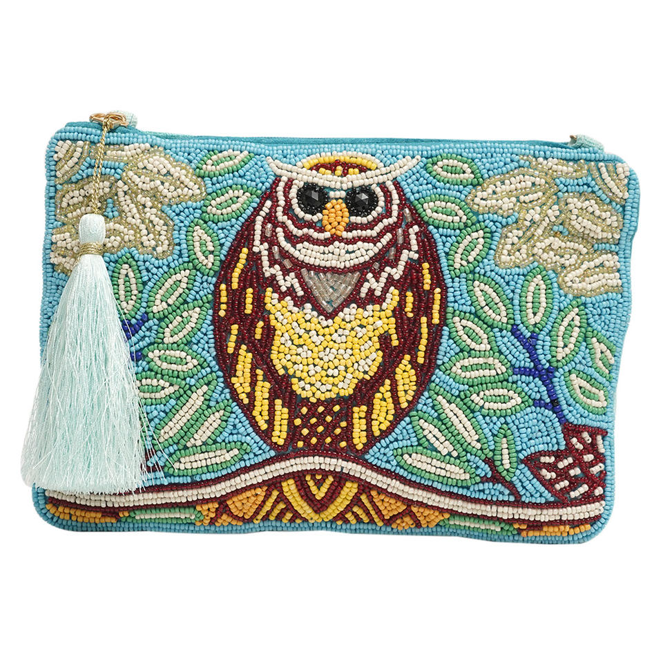 รายการ:กระเป๋าสะพายสุดหรูทำจากผ้าฝ้ายสีฟ้าประดับลูกปัดนกฮูก