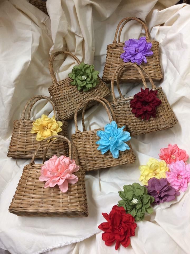 กระเป๋าแฟชั่นสตรีทำมือจากหวาย ดีไซน์ทันสมัย ตกแต่งลายดอกไม้ เป็นมิตรกับสิ่งแวดล้อม วัสดุธรรมชาติ สายสะพายสองเส้น ปิดด้วยเชือกผูก ความจุ 1 ลิตร