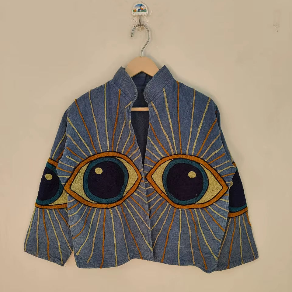 เสื้อแจ็คเก็ตผ้าฝ้ายปักลายซูซานี งานฝีมือสไตล์วินเทจ เสื้อโค้ทโบโฮ งานศิลปะสำหรับผู้หญิง