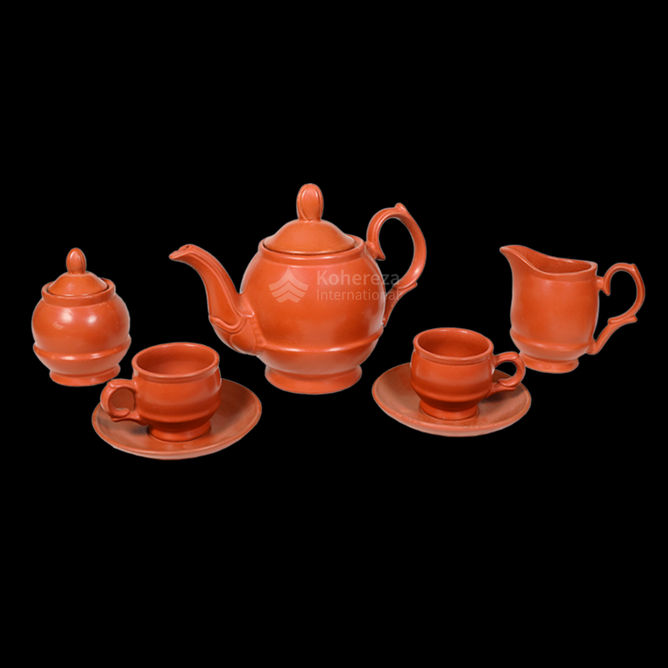 ชุดน้ำชาดินเผาทำมือ | กาน้ำชาดินเหนียวเป็นมิตรกับสิ่งแวดล้อมพร้อมถ้วยและถาด
