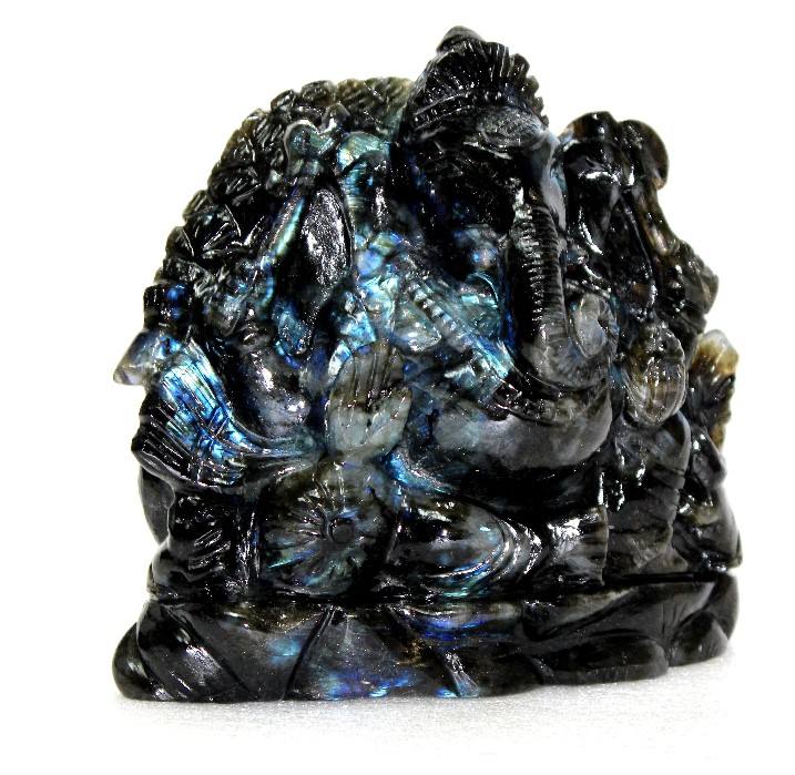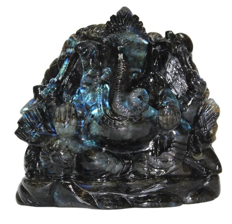 งานแกะสลักพระพิฆเนศด้วยมือจากหินลาบราโดไรต์ควอตซ์ วัสดุจากอินเดีย