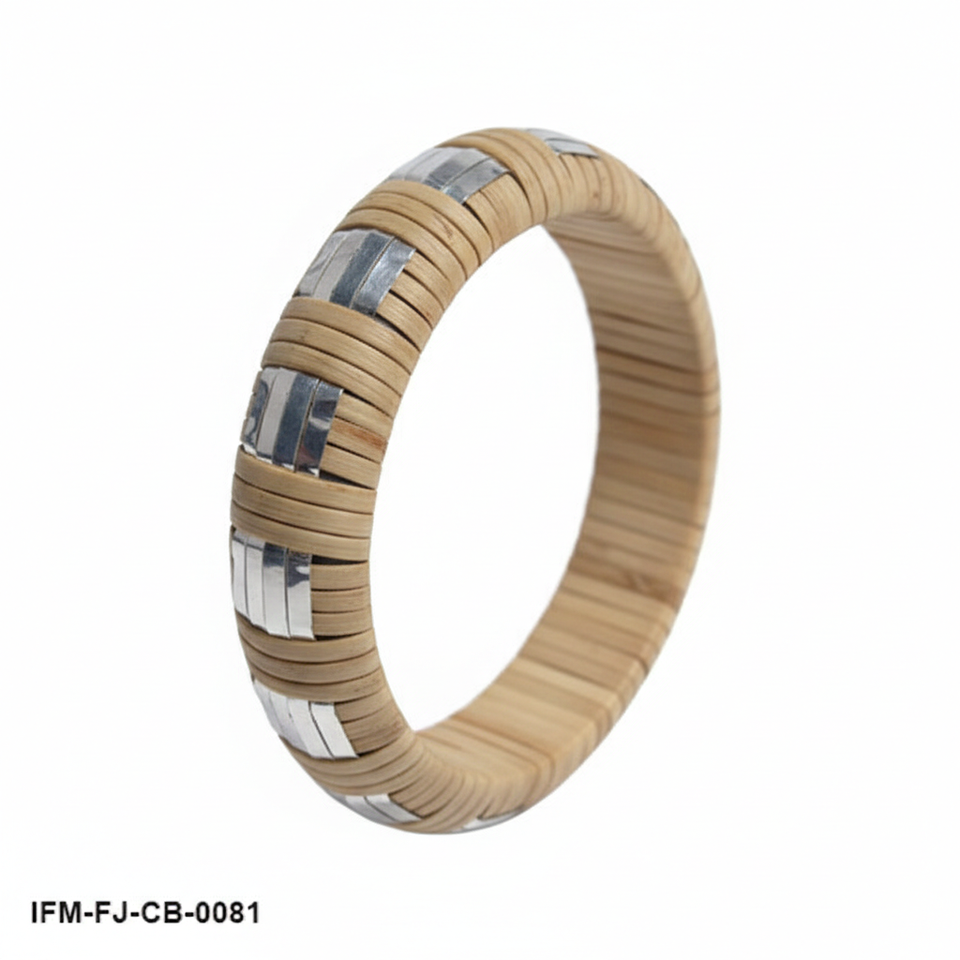 กำไลข้อมือหวายทอแบบแฮนด์เมด Tissé Tarenza: ห่อหุ้มด้วยเส้นใยราฟเฟียโทนสีเอิร์ธโทน พร้อมลวดลายพื้นผิวที่หรูหราและดีไซน์ทันสมัย