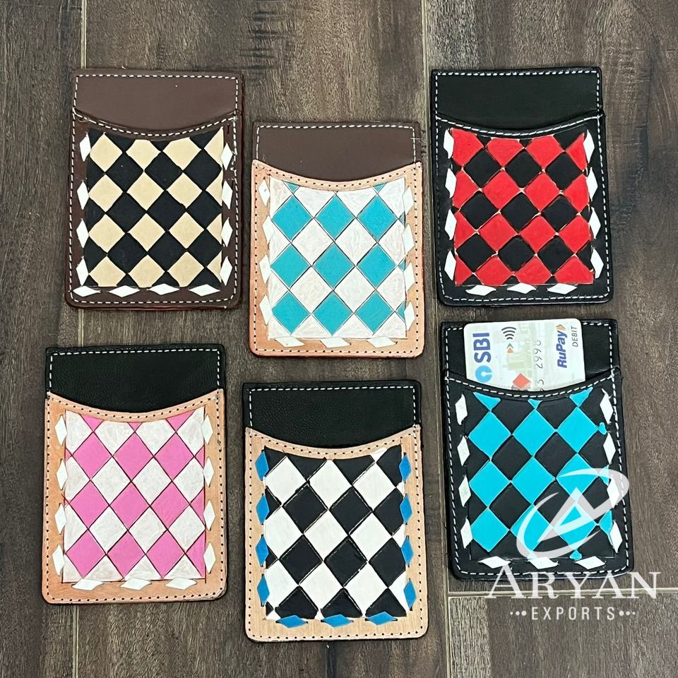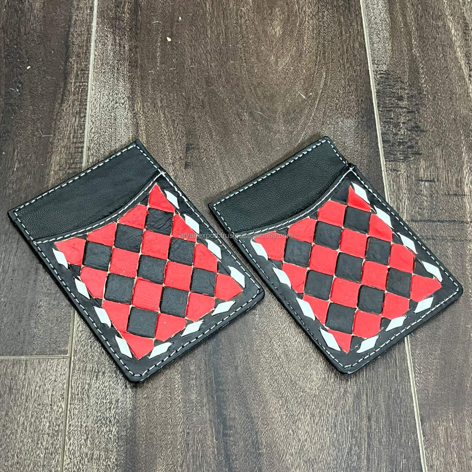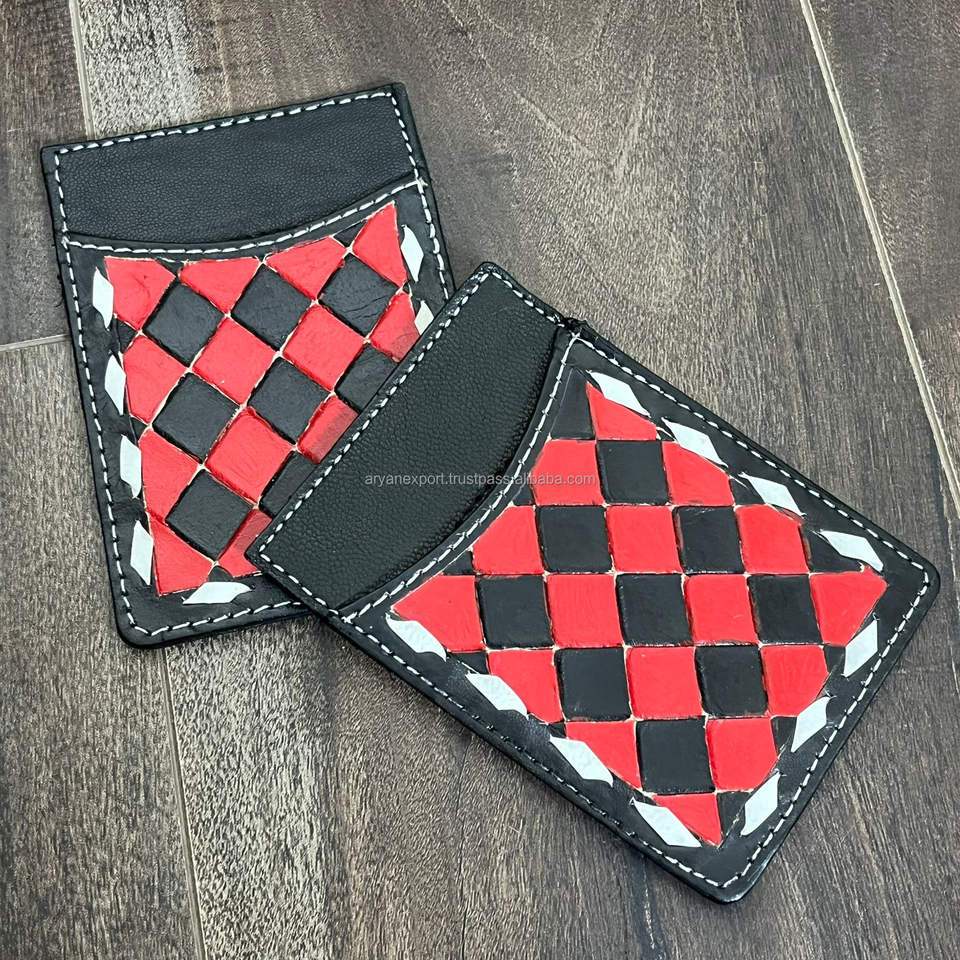 Product name:Hand Tooled Checkered Leather Credit Card Holder Wallet