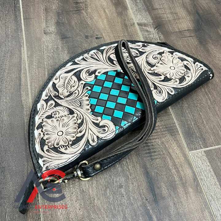 Product name:Hand Tooled Floral & Checkered Pattern Wallet