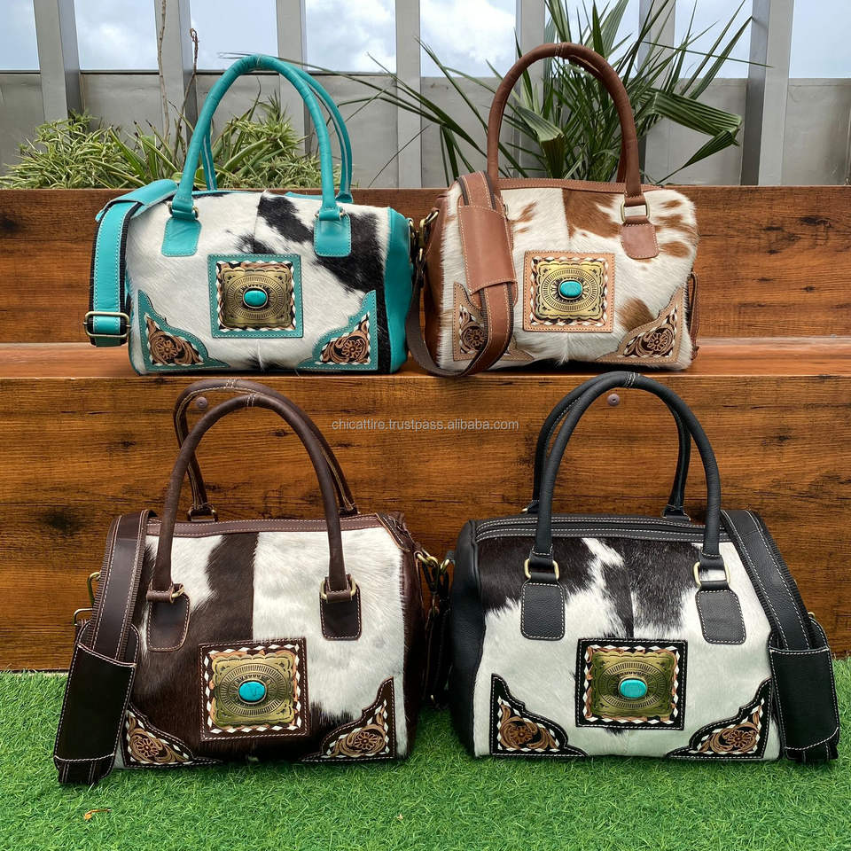 กระเป๋าดัฟเฟิลมีกระเป๋าหนังขนาดเล็กพร้อมหนังวัวขนสัตว์ปรับสายคล้องไหล่กระเป๋าภายในเป็นหินเทอร์ควอยซ์