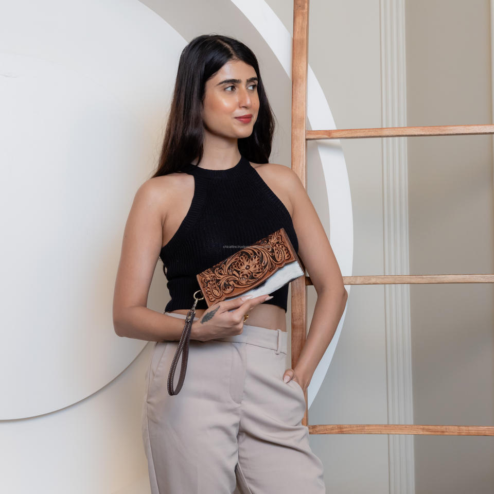 ชื่อผลิตภัณฑ์:กระเป๋าสตางค์หนังแบบถือมีขนติด