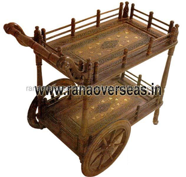 รถเข็นเสิร์ฟไม้2ชั้นแบบดั้งเดิมทำด้วยมือชื่อ