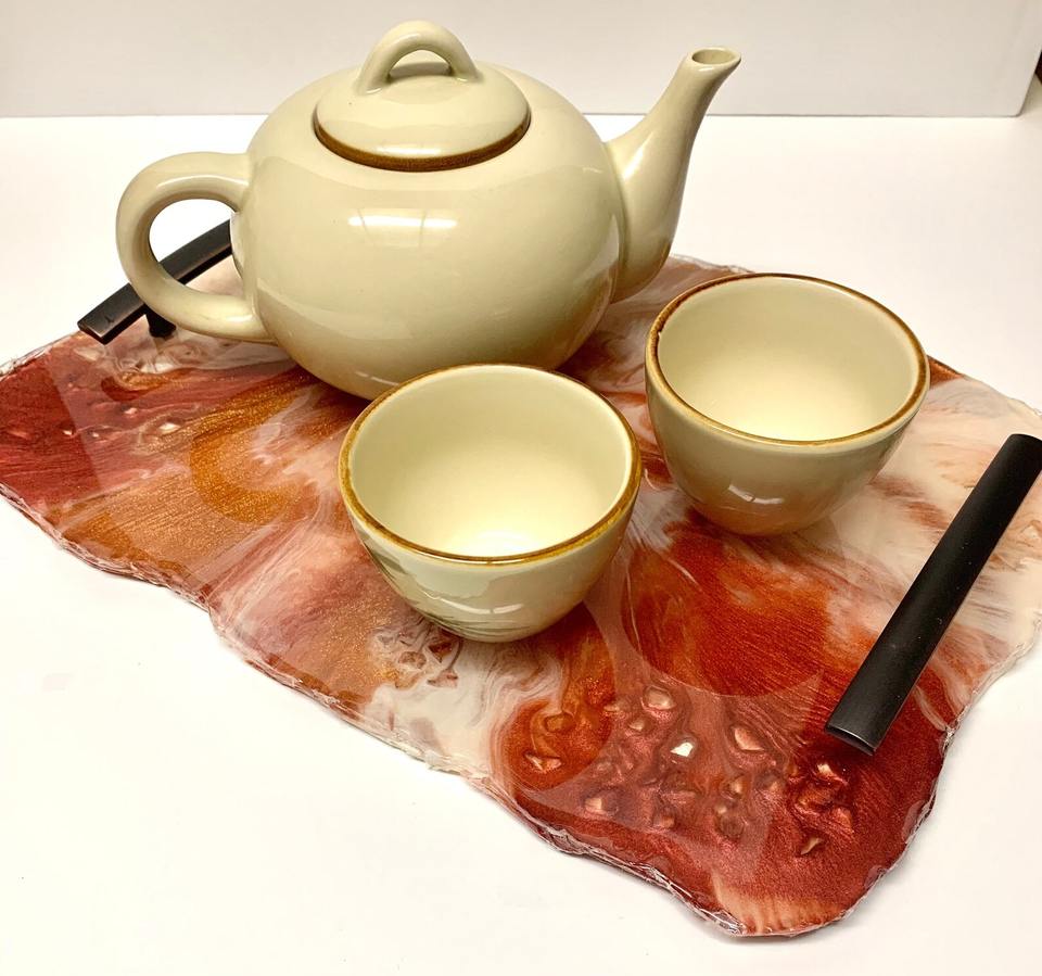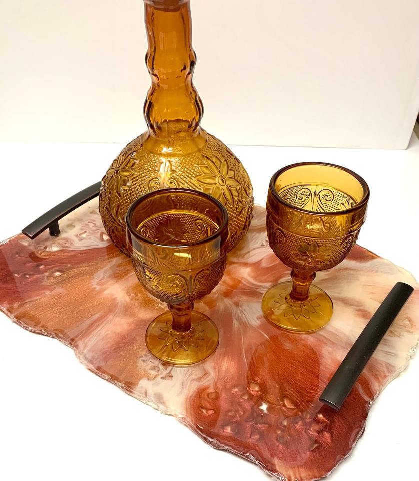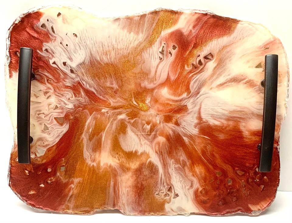 ถาดใส่อาหารเรซิ่นใสทำด้วยมือพร้อมดอกไม้ฝังสำหรับตกแต่งสมัยใหม่