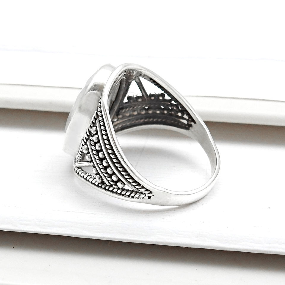 แหวนเงินสเตอร์ลิง unisex ทำด้วยมือพร้อมตัวเรือนพลอยสีรุ้งธรรมชาติชุดฝาแหวนแต่งงานและครบรอบขายส่ง
