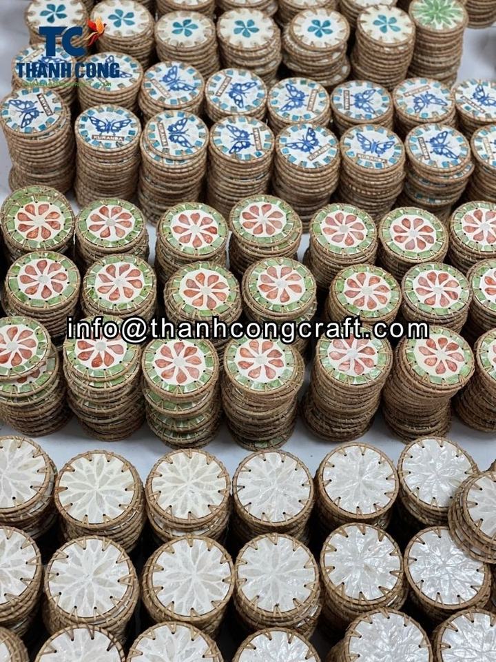 ที่รองแก้วเวียดนามทำด้วยมือพร้อมเปลือกและหวายสำหรับเครือค้าปลีกระดับพรีเมียมโรงแรมห้าดาวและผู้จัดจำหน่ายส่งออก