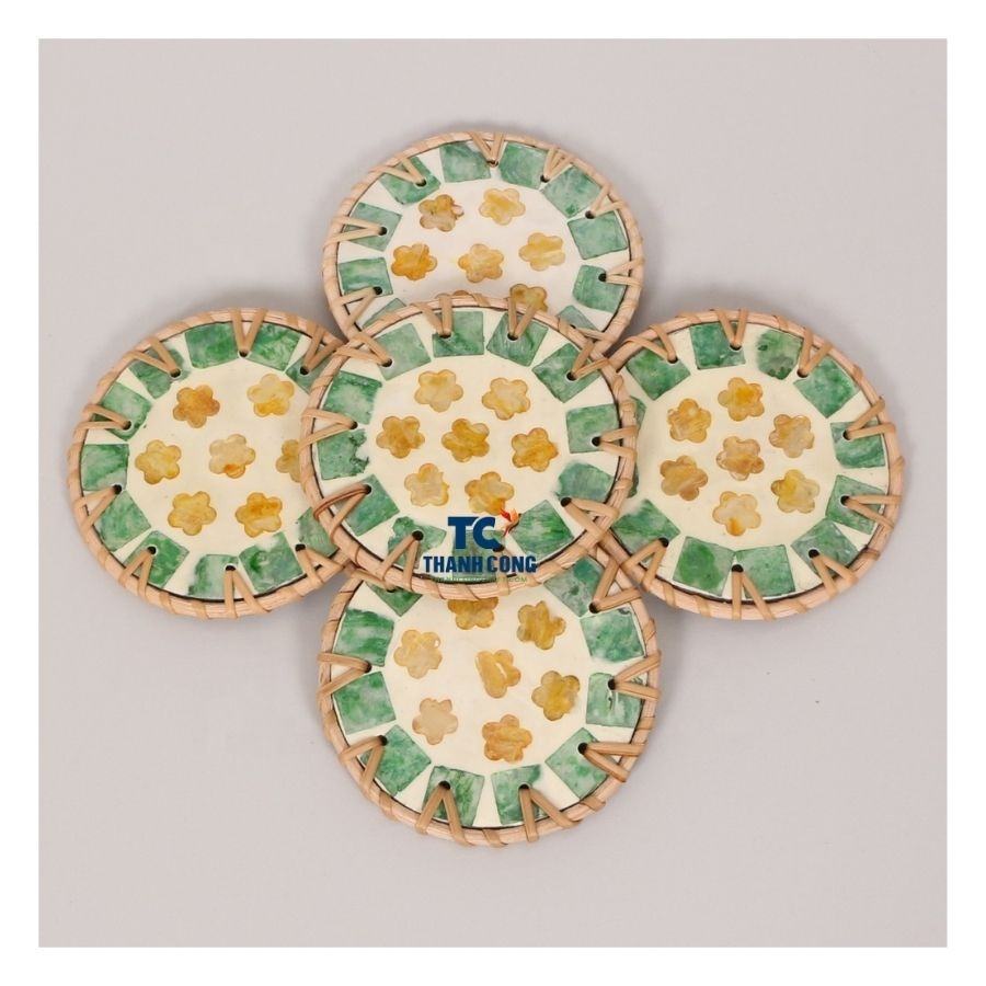 Product name:Mother of Pearl Coaster with Rattan Accents