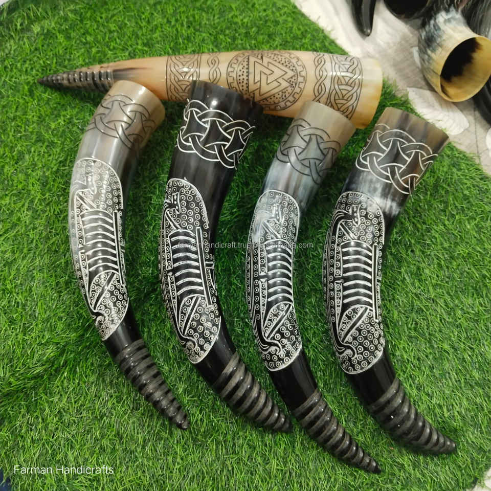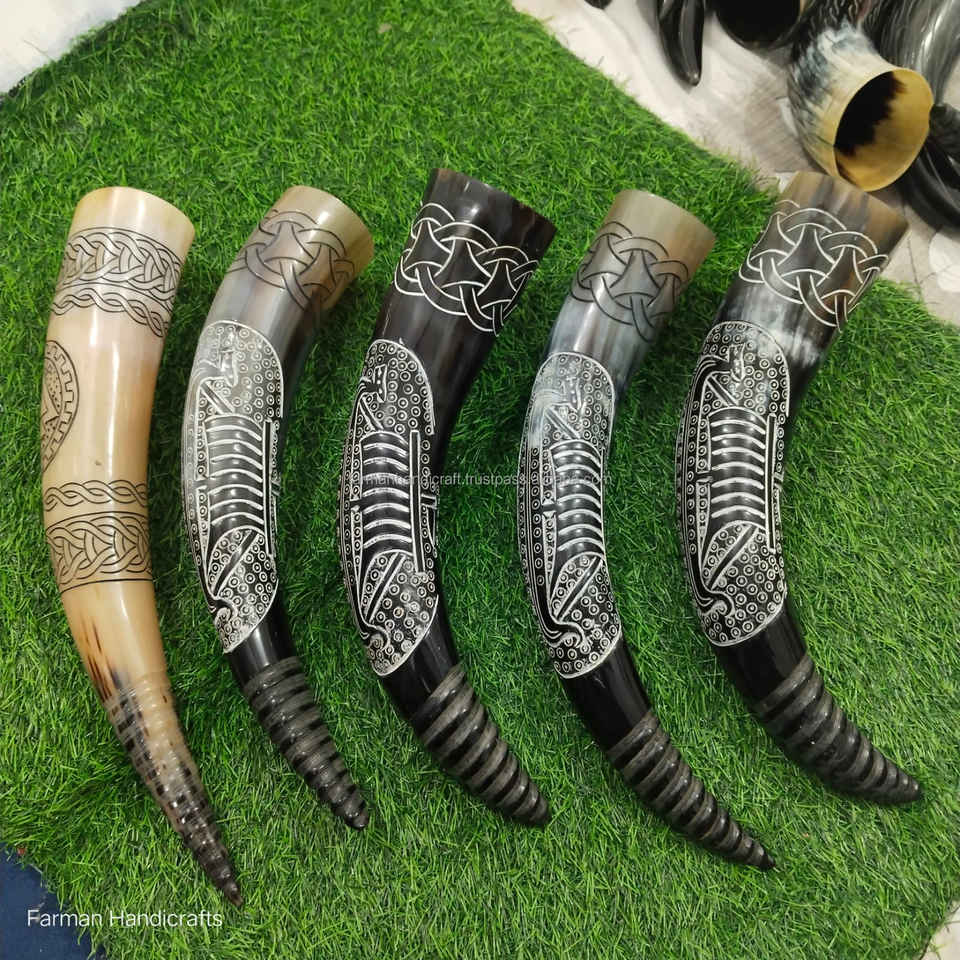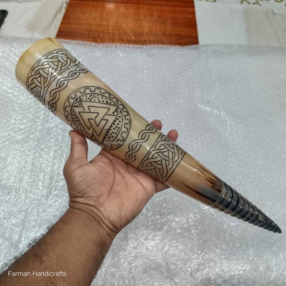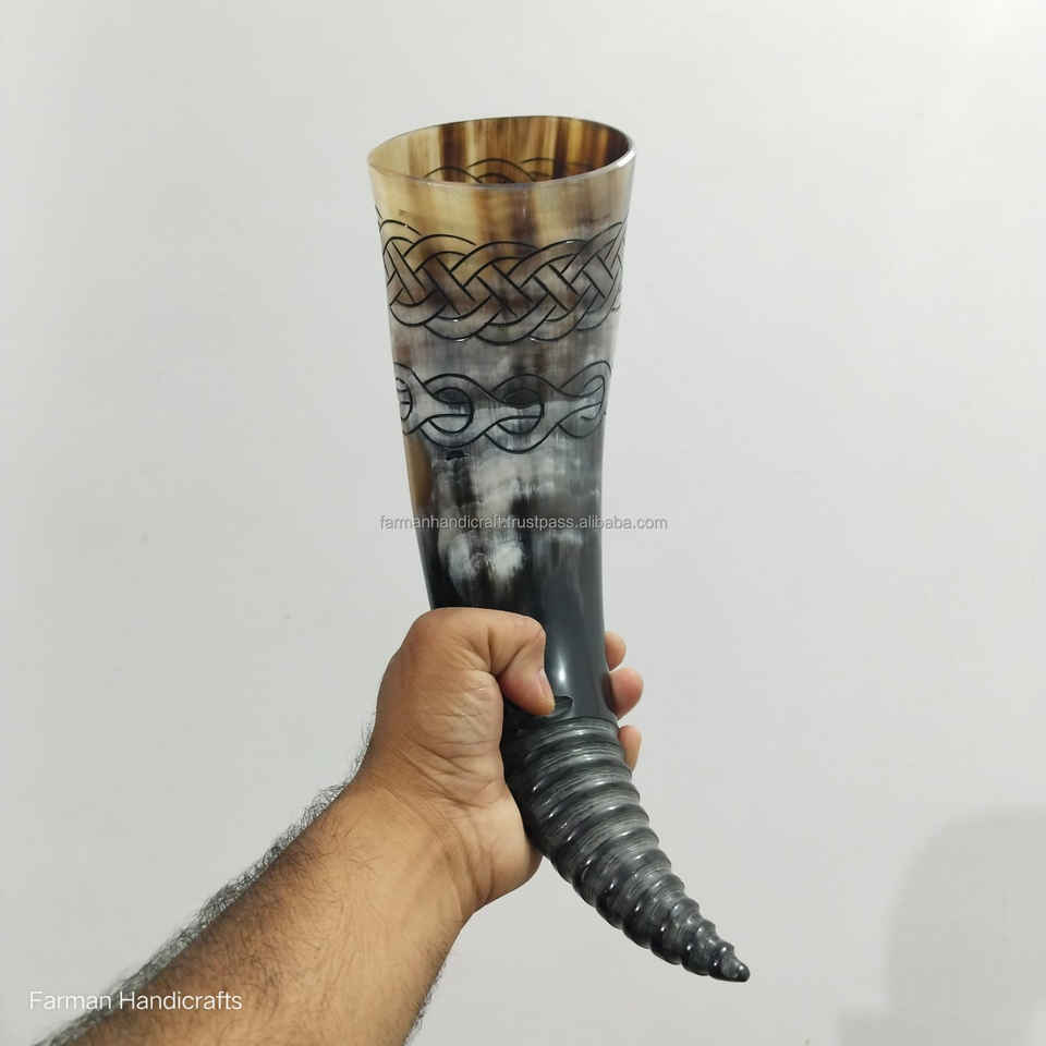 แก้วน้ำวิกกิ้งทำมือจากเขาควาย 800 มล. ลายแกะสลักแบบดั้งเดิม ดีไซน์หรูหรา ป้องกันการรั่วซึม เป็นมิตรกับสิ่งแวดล้อม ล้างทำความสะอาดได้