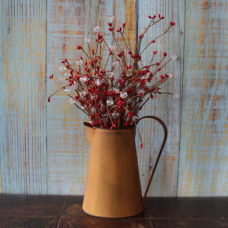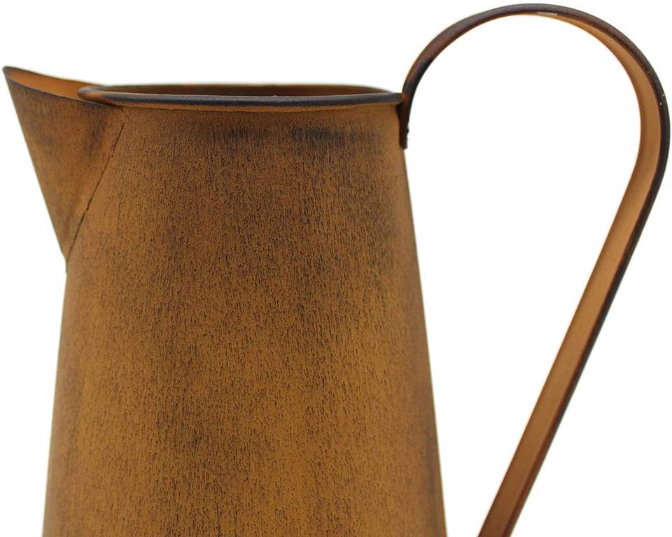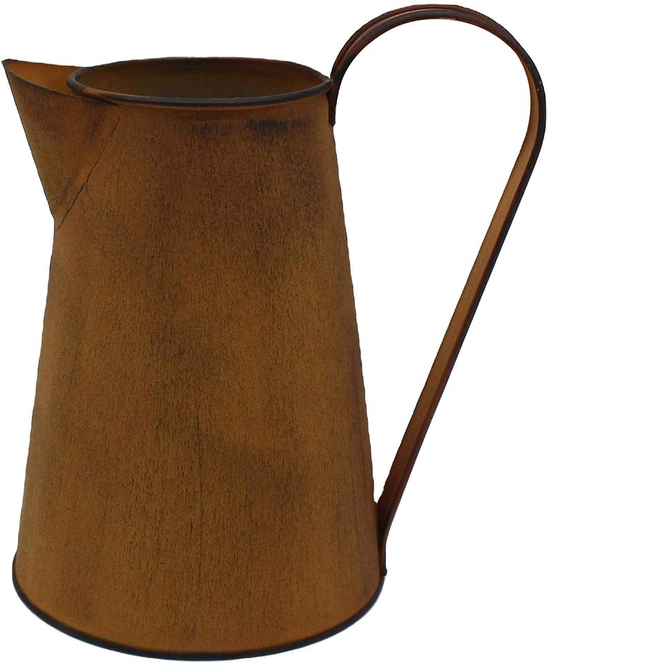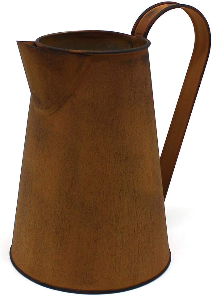 เหยือกโบราณทำด้วยมือทำจากโลหะชุบสังกะสีพร้อมที่จับแบบชนบทเหมาะสำหรับกระถางดอกไม้และของตกแต่งบ้าน